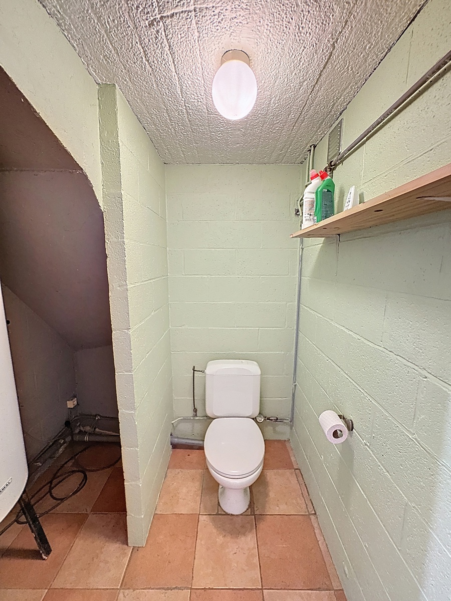 Le bien dispose d’une cave de 20 m² équipée d’un WC et d’un évier, d’un compteur électrique individuel, ainsi que d’arrivées d’eau tant dans la surface commerciale que dans la cave. Un forfait de 120 €/mois couvre l’eau et le chauffage, tandis que le précompte immobilier, d’un montant de 42 €/mois, reste à charge du locataire. Pour plus de confort et de sécurité, le local est équipé d’un volet électrique et d’un store banne extérieur.