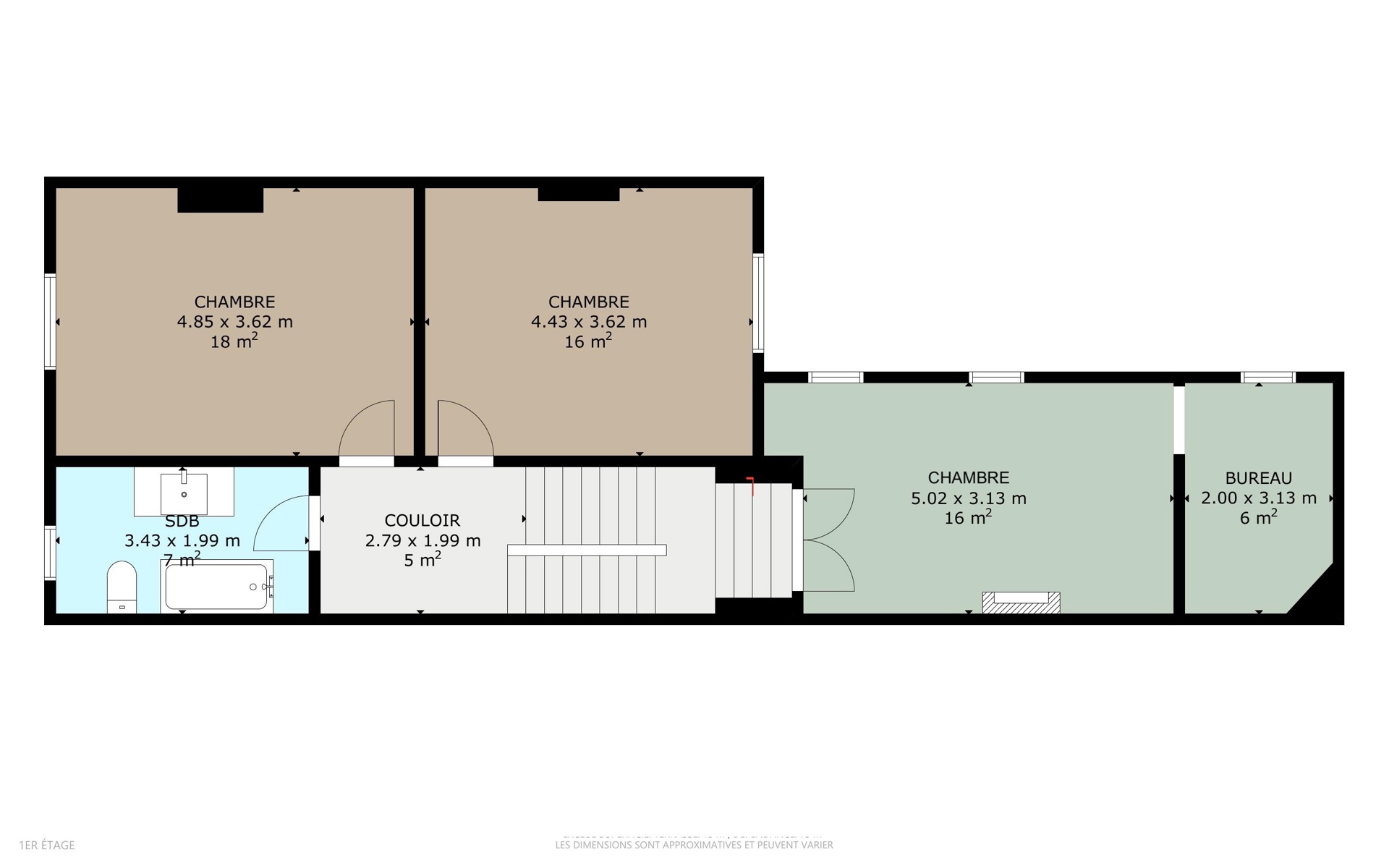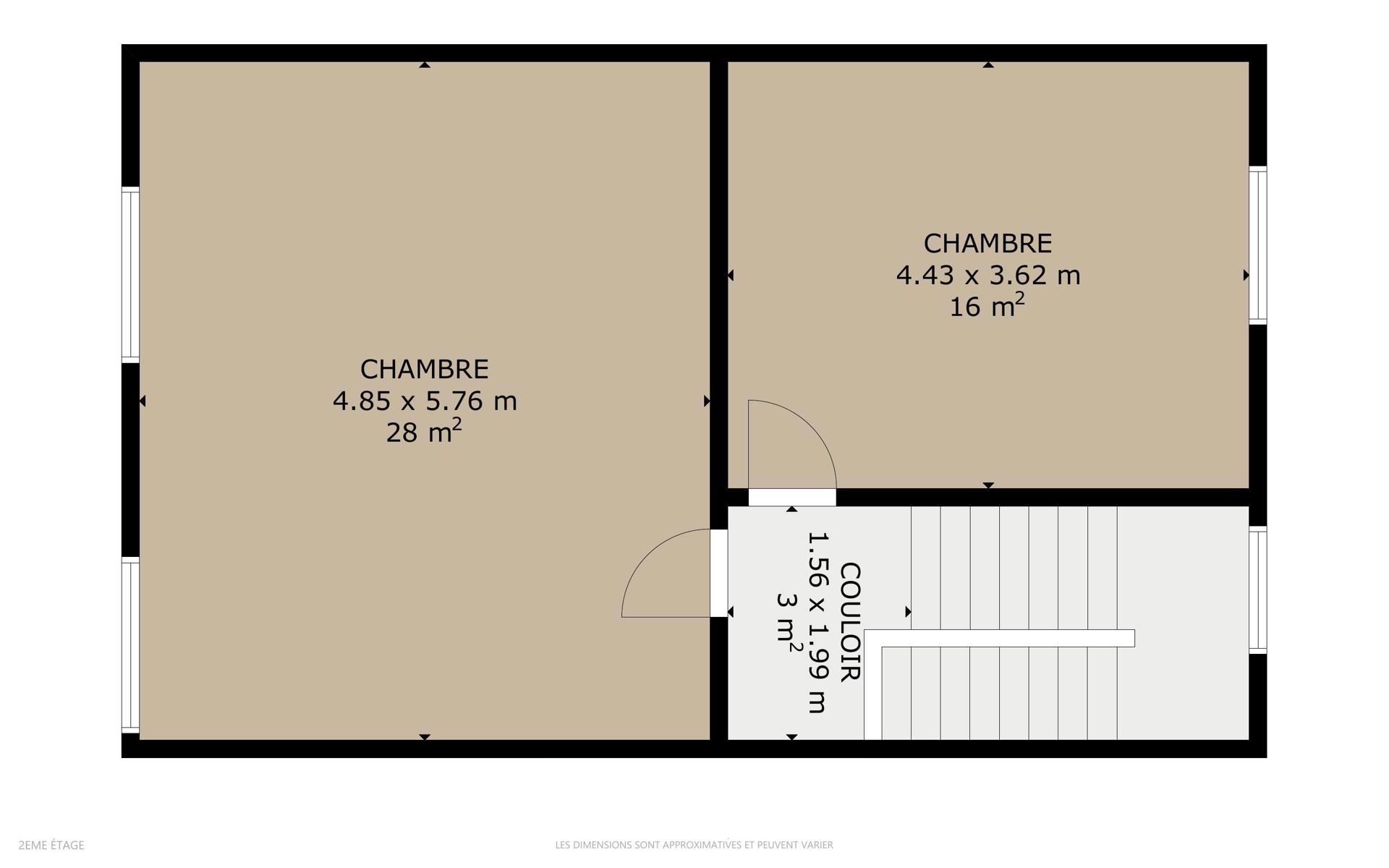 Le dernier niveau offre un hall desservant deux chambres supplémentaires, dont une belle chambre de 28 m².