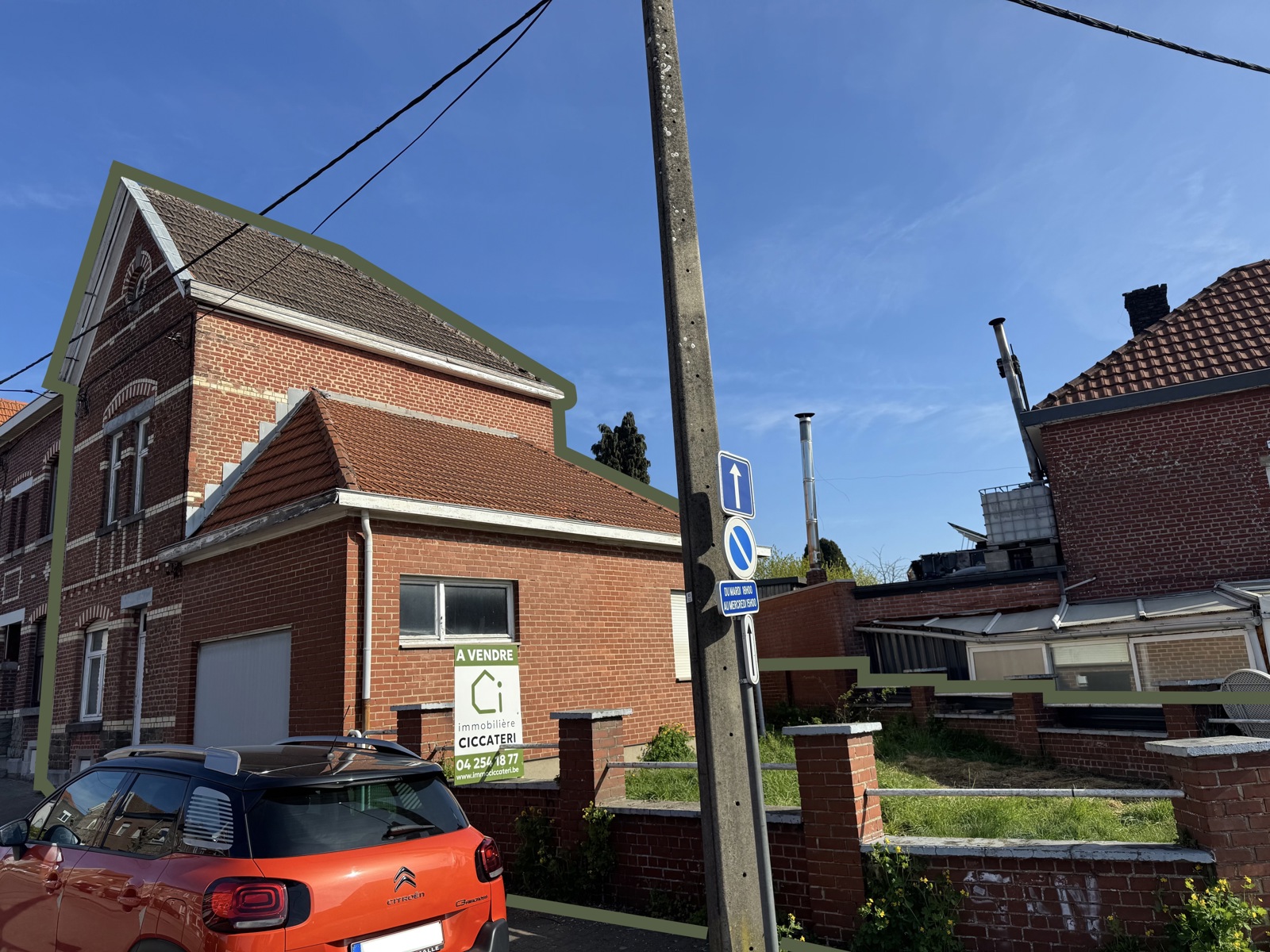 Le bien comprend une maison unifamiliale à rénover entièrement, d’une superficie de 166 m² selon le certificat PEB, ainsi qu’un terrain constructible situé sur le côté de l’habitation existante, pour lequel un permis d’urbanisme sera délivré.